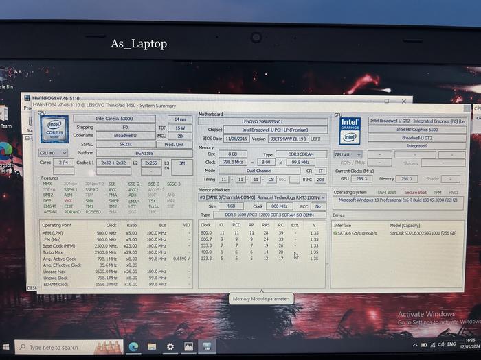 LAPTOP LENOVO THINKPAD T450 CORE I5/I7 GEN 5|RAM 8GB|14"|SSD 256GB - T450 I5 GEN5, RAM4GB SSD128
