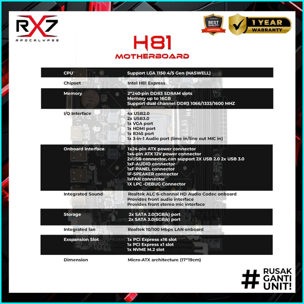 Motherboard Rx7 H81 Lga 1150 Ddr3 Mainboard H81 Support Nvme