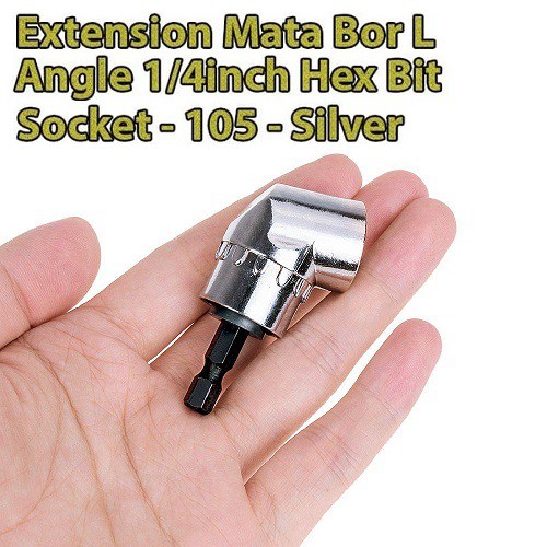 Mata Bor L Angle Extension Siku 1/4" 6.35mm Hex Bit Dril Socket Holder 105° Silver