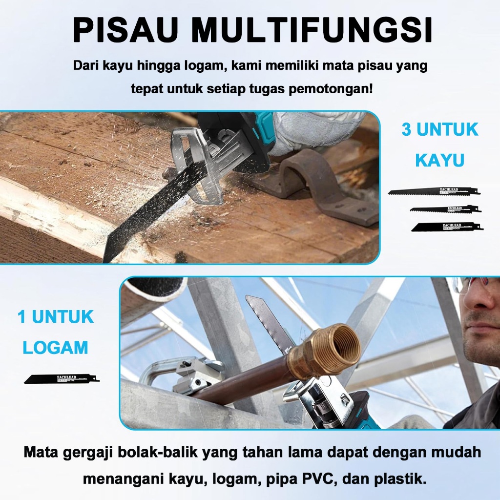 Convenyy Reciprocating saw cordless Gergaji mesin mini 4800rpm Gergaji Listrik Gergaji pedang bolak-balik 4 Mata Gergaji