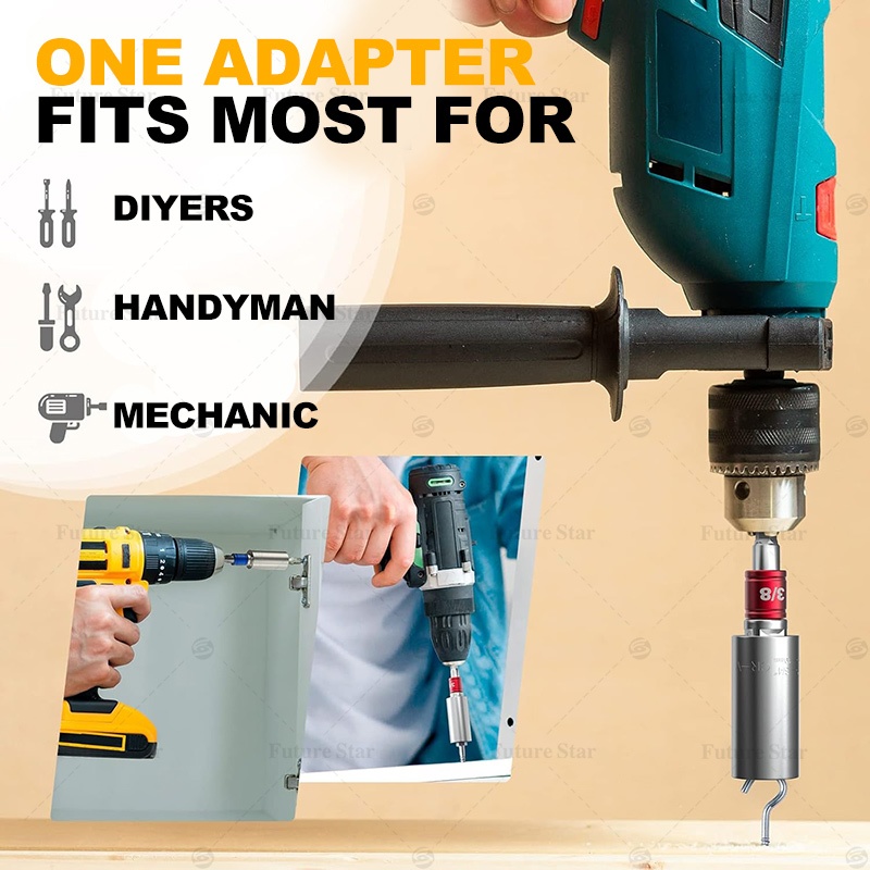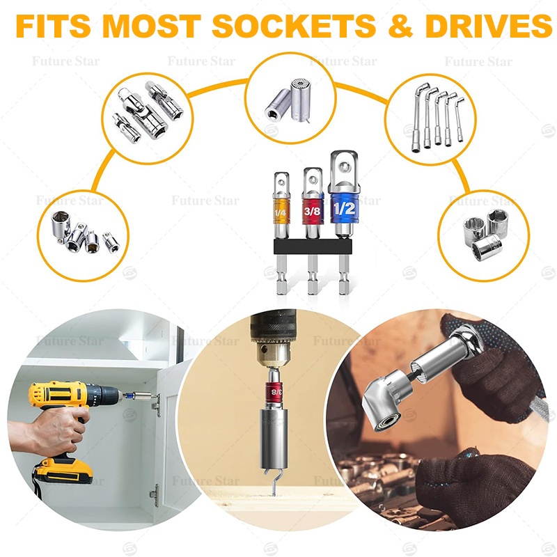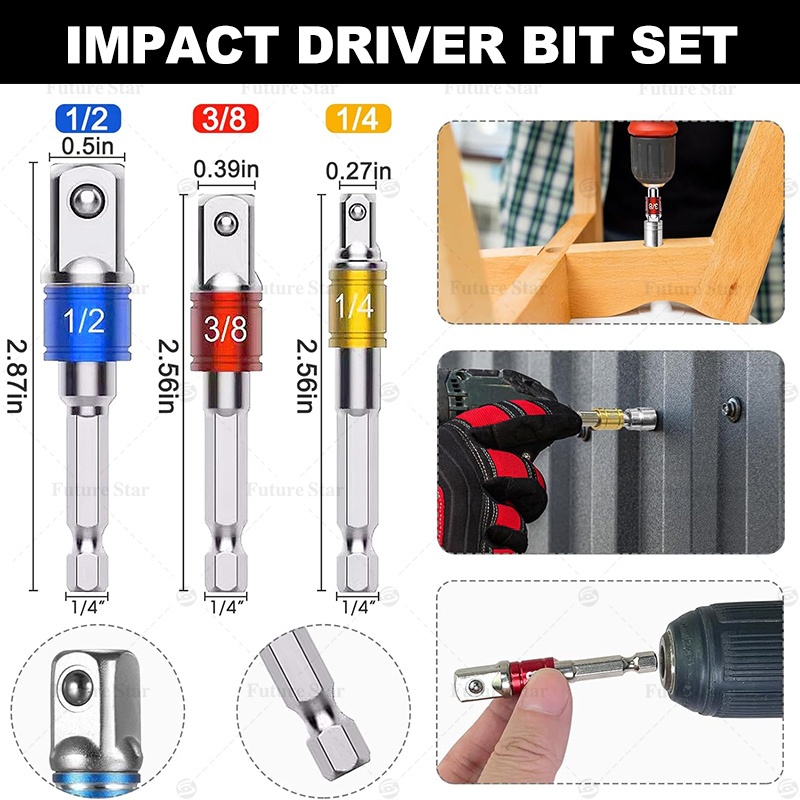 Mata Obeng Adapter Drill Bits 3PCS Extension Square Impact Grade Socket Adapter Bit Set Drill 3/8", 1/4",1/2-Inch Cr-V H
