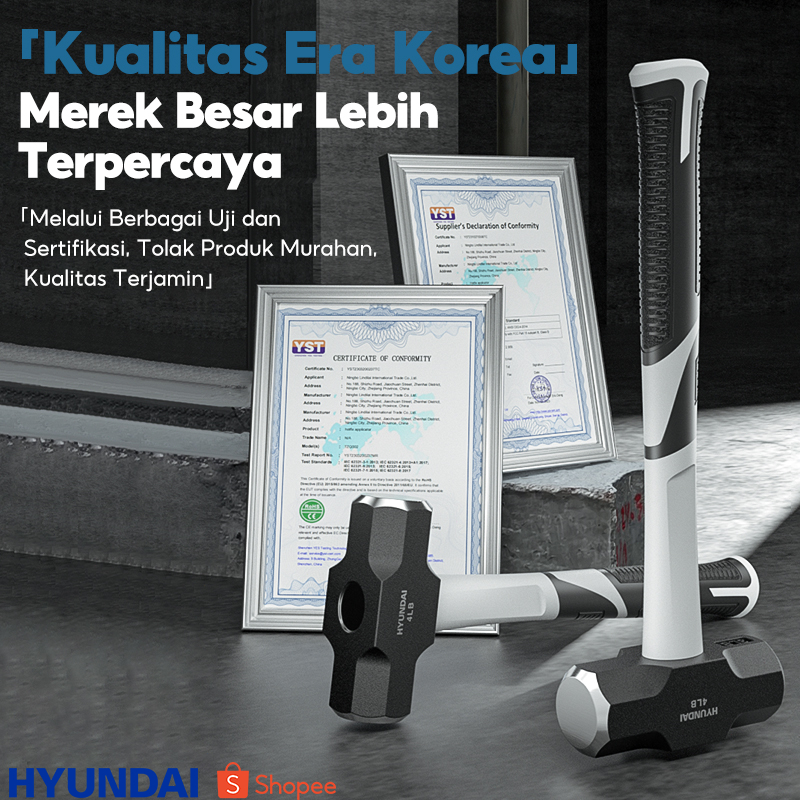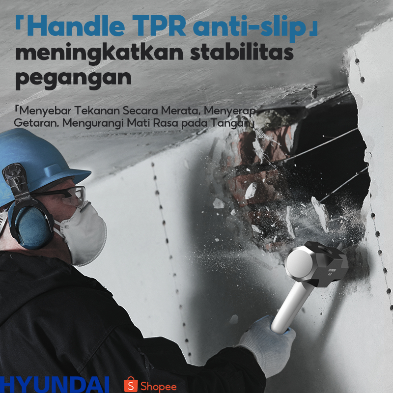 HYUNDAI Palu Godam Gagang Karet Fiber 2LB 3LB 4LB Palu Besi Baja Asli Martil Batu Tembok Beton