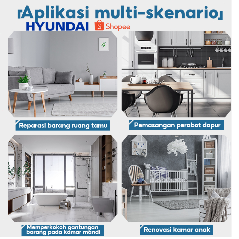 HYUNDAI Bor Listrik Set Lengkap Tool Box Alat Perkakas Baterai Cordless Tang Obeng Palu Kunci Pas Toolkit 55Set Pertukan