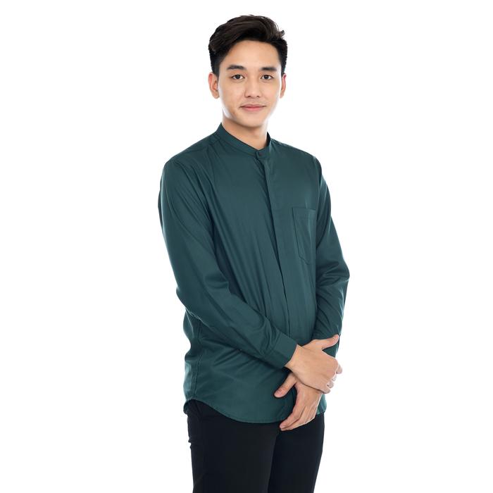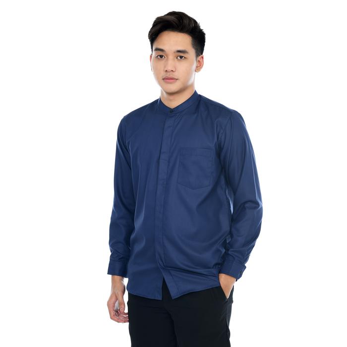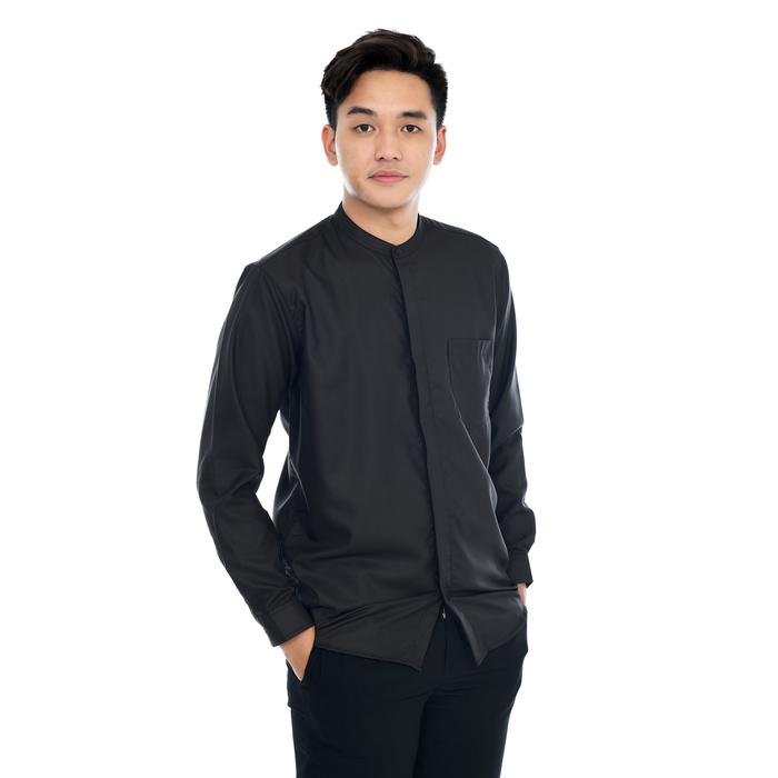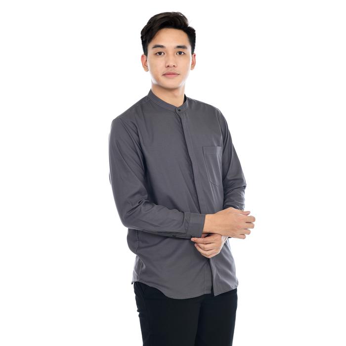 HIZZAGHI KEMEJA KOKO PRIA DEWASA LENGAN PANJANG POLOS KATUN TOYOBO FODU BAJU FIT MUSLIM NYAMAN - ABU SILVER, S