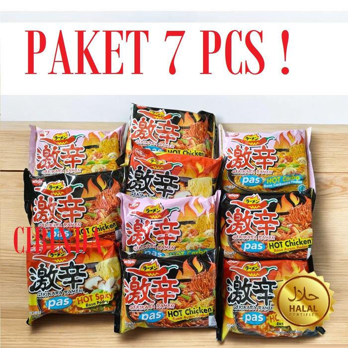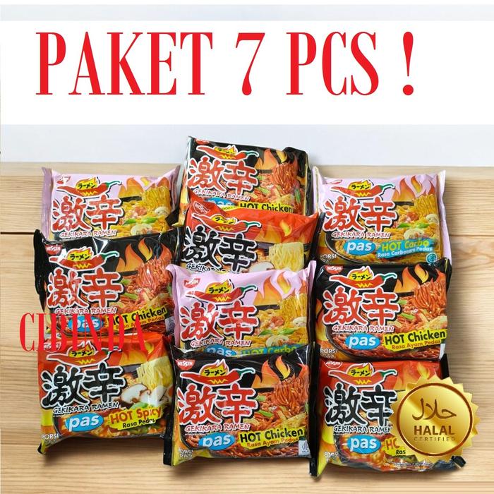 PAKET 7 PCS MIE INSTANT RAMEN NISSIN GEKIKARA RAMEN PAS HALAL RAMEN ALA JEPANG ALL VARIANT HOT CARBO HOT SPICY HOT CHICKEN FOOD NOODLES - 7 PCS