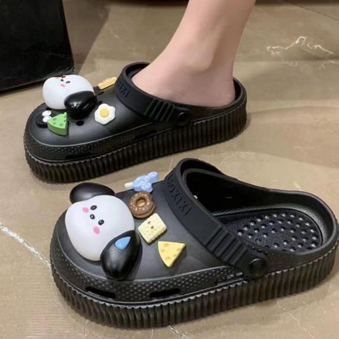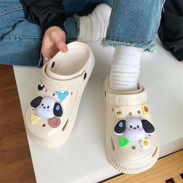 TEFANSY Sandal Kodok Dewasa Wanita Kartun Anjing DIY Sendal Perempuan Baim Jibbitz Wedges Platform