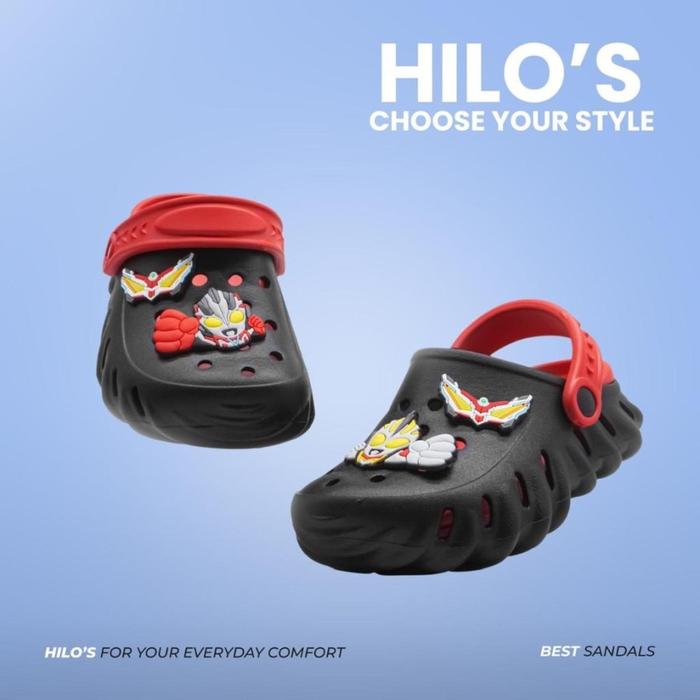 HILOS SANDAL ANAK LAKI-LAKI MODEL BAIK CROC MOTIF ULTRAMAN BAHAN KARET EVA JELLY EMPUK