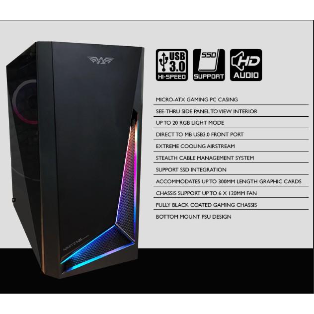 CASING PC GAMING ARMAGGEDDON NIMITZ N5 AURORA MICRO ATX GARANSI RESMI 1 TAHUN GLASS HITAM - WHITE, CASE ONLY