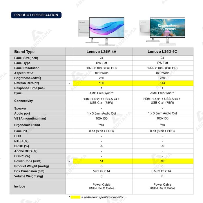 MONITOR LED LENOVO L24M-4A 24" 100HZ L24D-4C 24" 144HZ IPS 1080P FHD HDMI X1 USB-C 75W USB-A X4 SPEAKER FULL ERGONOMIC STAND BEZEL ULTRA TIPIS ESTETIKA MODERN PADA FUNGSIONALITAS - L24D-4C