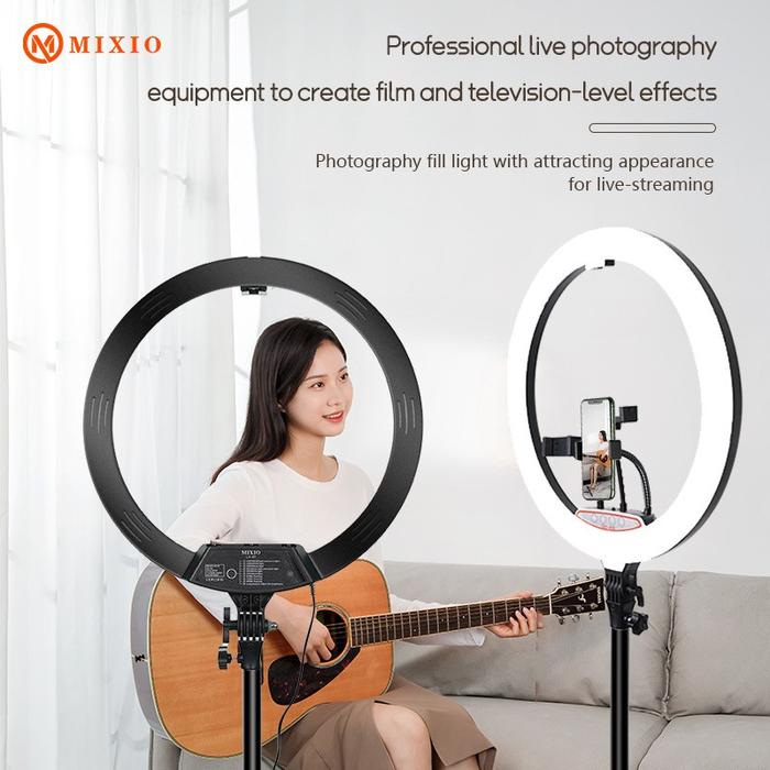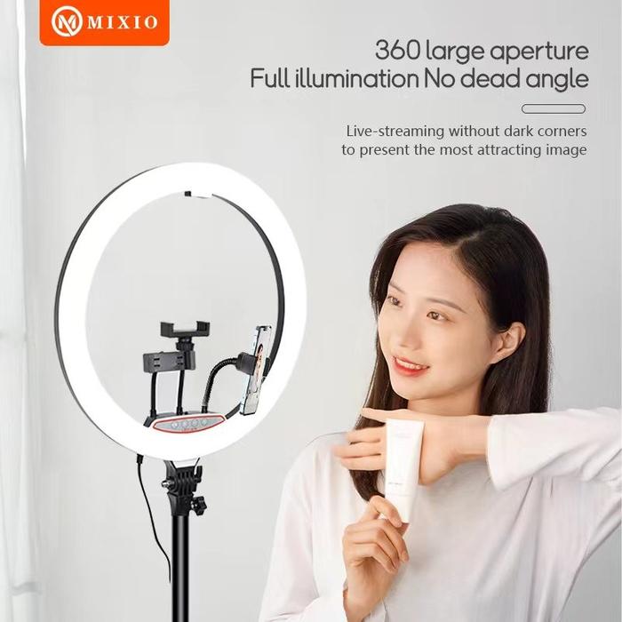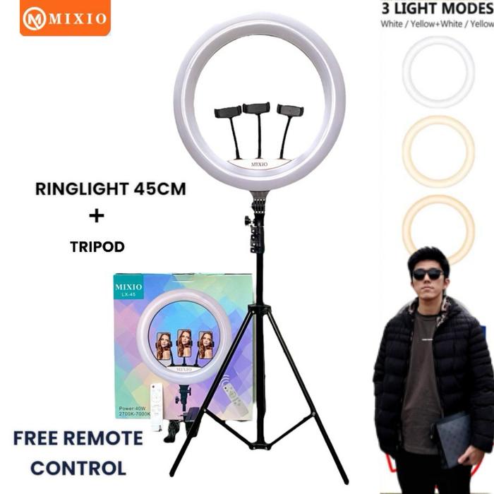 [EXCLUSIVE LEO] MIXIO RING LIGHT 45CM + LIGHT STAND TRIPOD 2M WITH 3 HOLDER HP & REMOT - RINGLIGHT 45CM + TRIPOD 2M