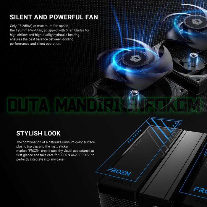 ID COOLING FROZN A620 PRO SE I ARGB - HIGH PERFORMANCE DUAL TOWER AIR CPU COOLER WITH POWDER GROOVE FOR INTEL & AMD - ARGB SNOW