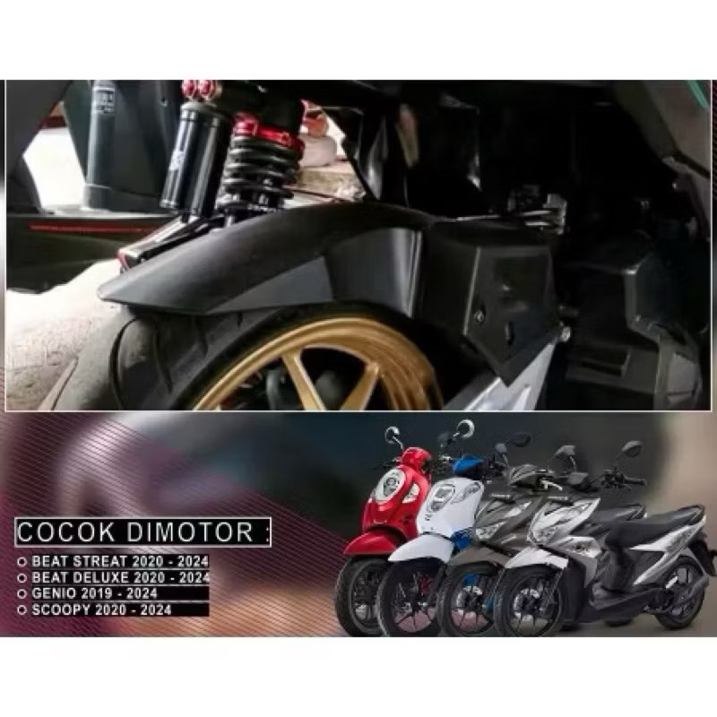 HUGGER AIRBLADE BEAT NEW DELUXE STREET 2020 2023 SCOOPY FI 2021 2023 GENIO HUGER AIR BLADE ORIGINAL EURO PARTS SPAKBOR KOLONG BELAKANG HONDA BEAT NEW HAGER BEAT PNP TANPA COAK ABS ISS BLACK SPARKBOR
