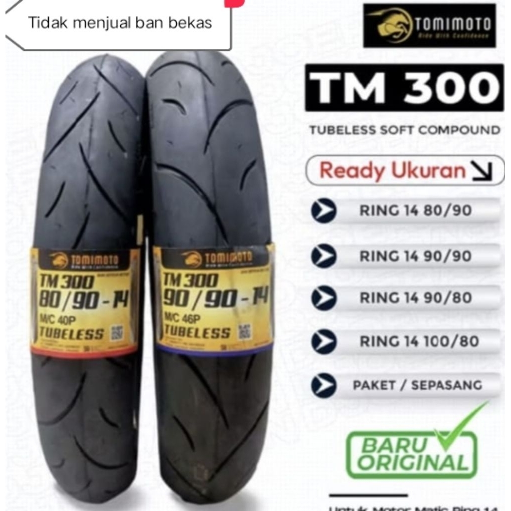 Ban Tubeless TOMIMOTO TM 300 series TL ring 14 matic dan Ring 17 bebek