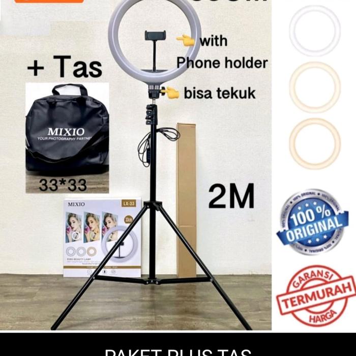 MIXIO RING LIGHT 33CM + TAS + LIGHT STAND TRIPOD 2M SELFIE LIVESTREAMER