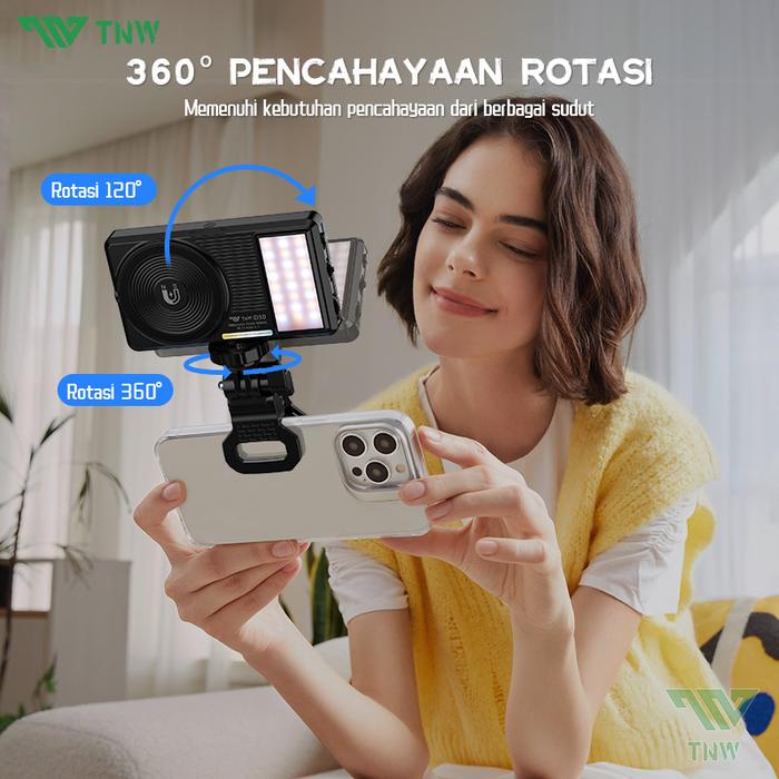 TNW D30 SELFIE LIGHT PORTABLE MAGNETIC FILL LIGHT MINI DUAL LIGHT LED VIDEO LAMPU PORTABLE LAMPU CAMERA HANDPHONE - D30-HITAM