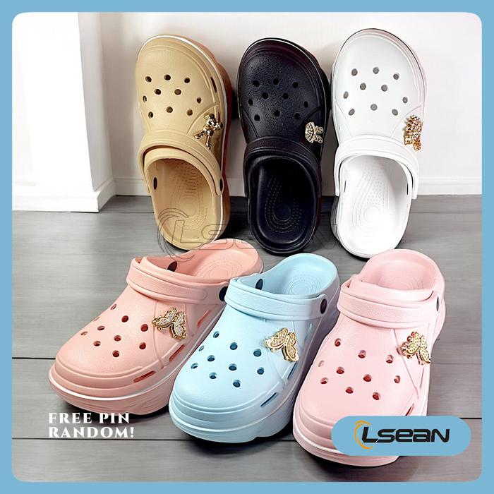 Sandal Wanita Model Kodok Baim Hak Sol Tinggi Pin Lucu V20-P kerok cewek wedge