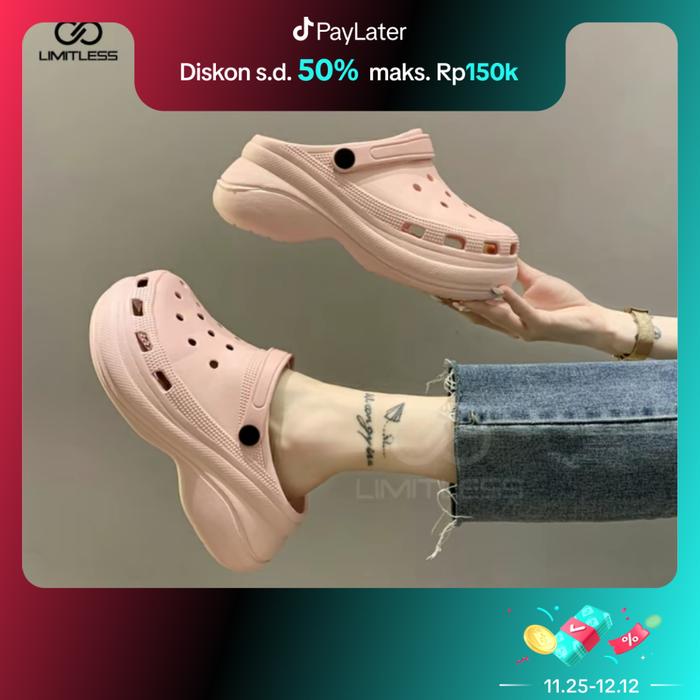 Limitless - Sandal Wanita Selop Fuji Polos Sendal Cewek Slop Kekinian Polos Tinggi Karet