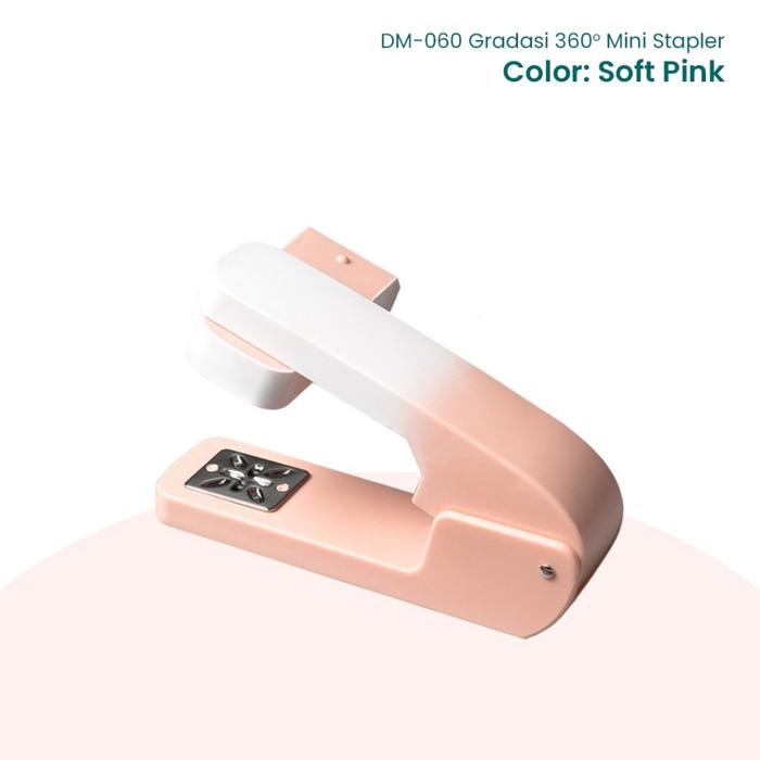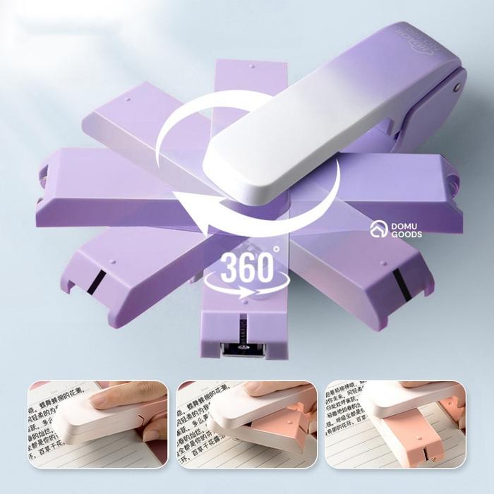 Stapler Rotatable 360 Besar 360 derajat Stapler Triple Stapler Staples Meja Putar 3 Arah - Merah Muda