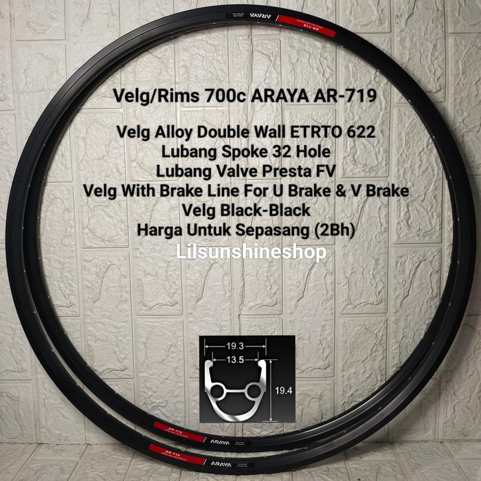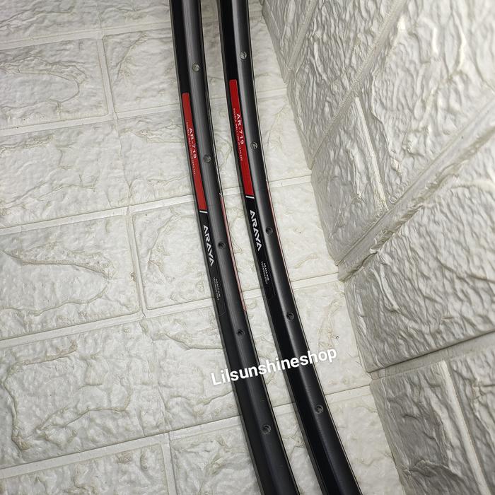 VELG RIM 700C ARAYA 32H AR719 DOUBLE WALL BRAKE LINE FV FULL BLACK RIMS 700 SEPEDA ROADBIKE FIXIE JUMLAH SEPASANG
