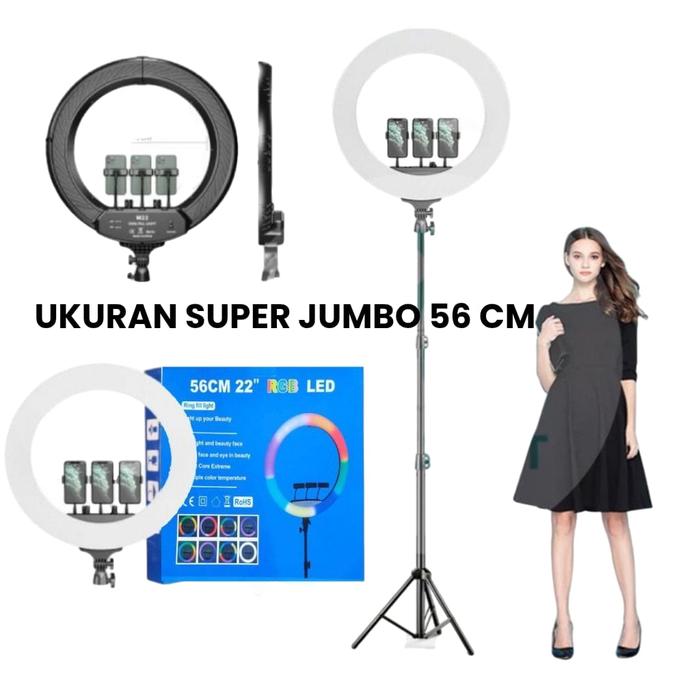 RING LIGHT RGB 56CM + LIGHT STAND TRIPOD 2,1M 3 PHONE HOLDER JUMBO AKSESORIS LAMPU LED REMOT