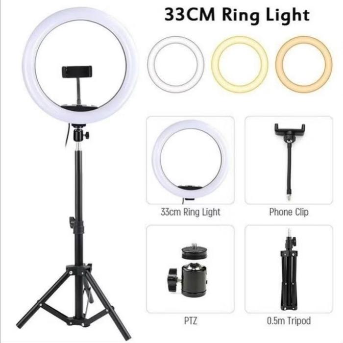 LAMPU RING LIGHT LED 33CM 13 INCH RINGLIGHT SELFIE 3 MODE LIVE STREAMING - LAMPU 33CM+TRIPOD 2M