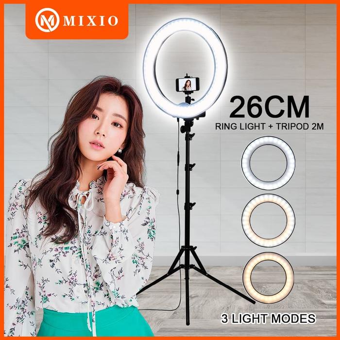 MIXIO RING LIGHT 26CM + LIGHT STAND TRIPOD 2M SELFIE LIVESTREAMER - NO TAS