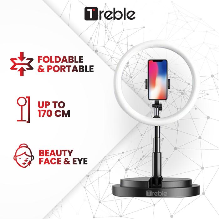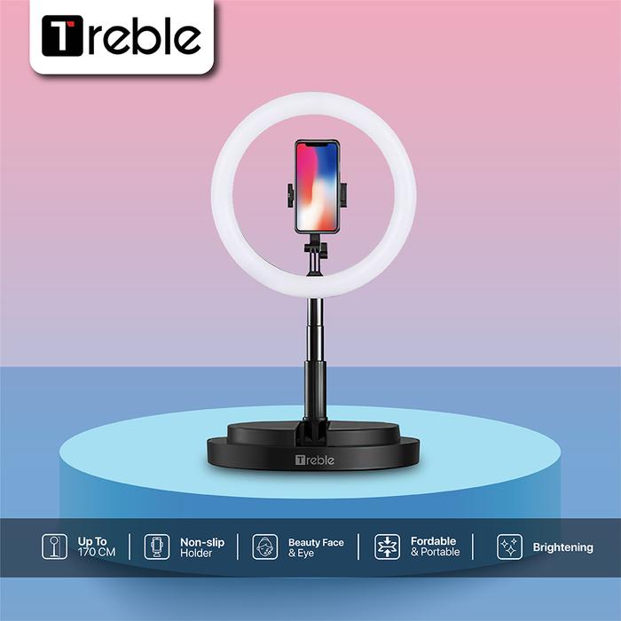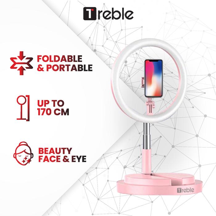 TREBLE PORTABLE TRIPOD SELFIE RING LIGHT RINGLIGHT LED PHONE HOLDER PINK ALUMINIUM - HITAM