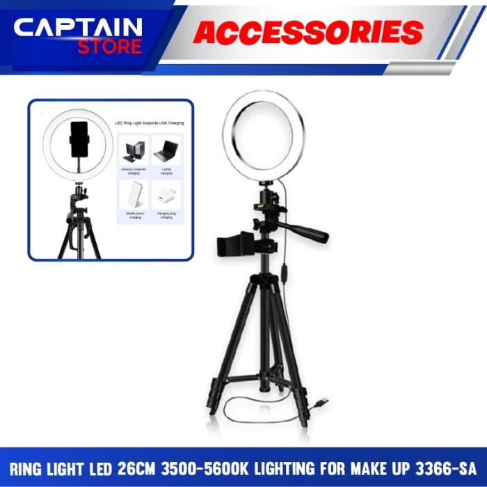 RING LIGHT LED 26CM 3500-5600K LIGHTING FOR MAKE UP 3366-SA RINGLIGHT TRIPOD LAMPU - PAKET A