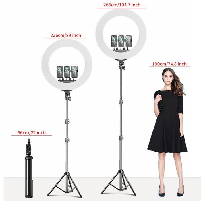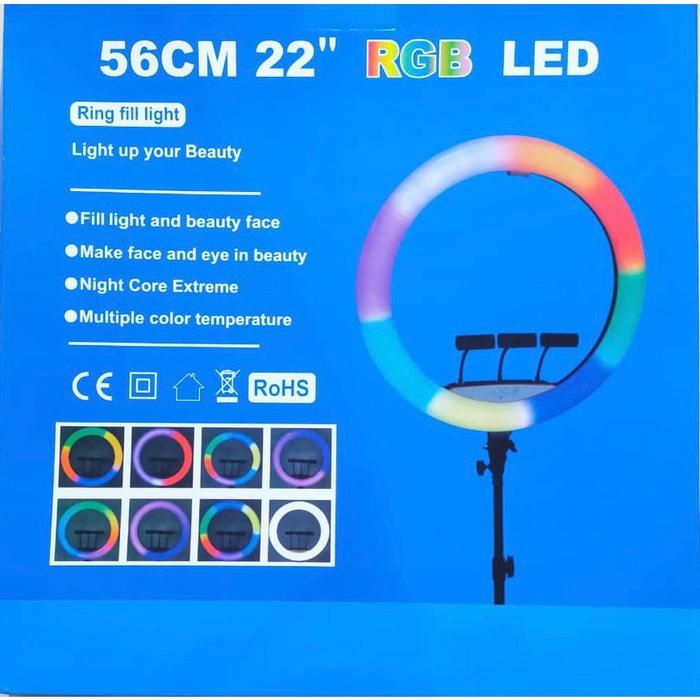 RING LIGHT RGB 56CM + LIGHT STAND TRIPOD 2,1M 3 PHONE HOLDER JUMBO AKSESORIS LAMPU - M22 RGB