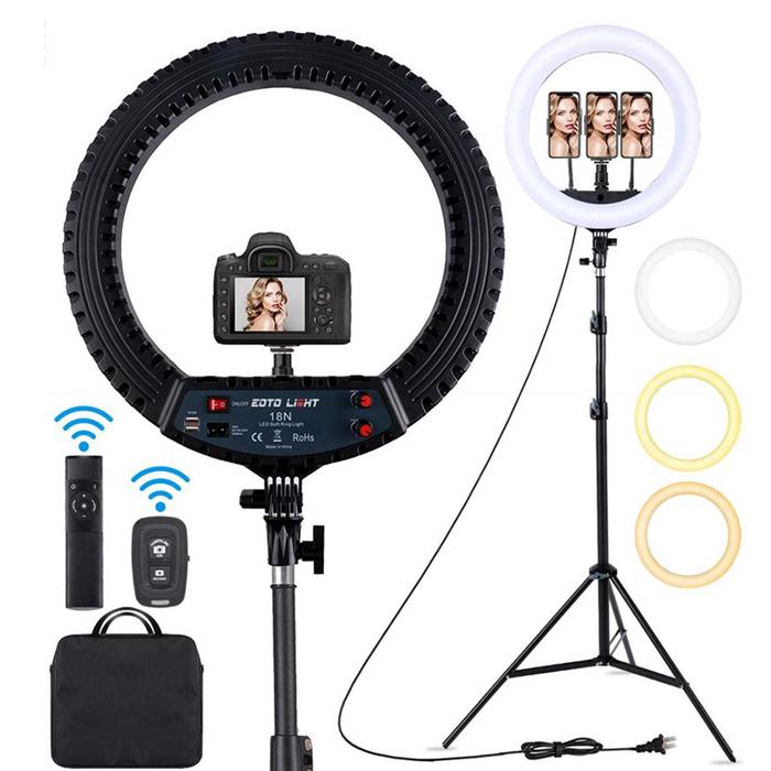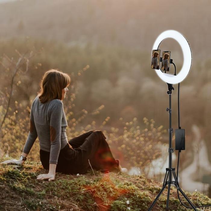 PAKET RINGLIGHT RING LIGHT 45CM DAN 2M TRIPOD STEPLESS DIMMIN RINGLIGHT SELFIE TIGA WARNA LAMPU SELFIE LIVESTREAM WITH 3 HOLDER HP - 1SET