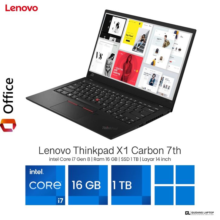 Laptop Lenovo Thinkpad X1 Carbon 7th Core i7 Gen 8 Ram 16 GB SSD 1 TB Layar 14 Inch Full HD