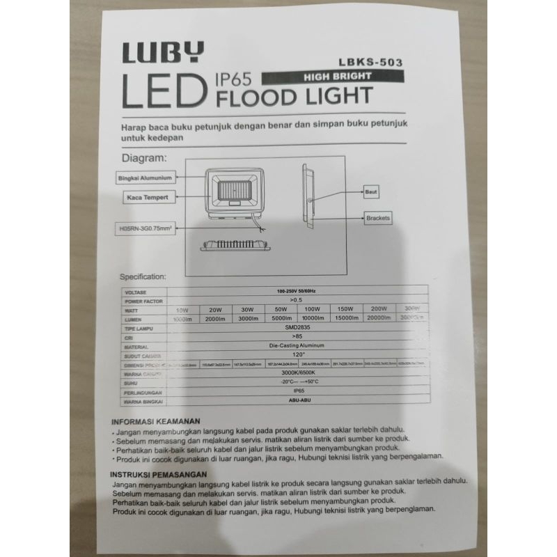 LAMPU SOROT / KAP SOROT GARANSI 1 TAHUN 503 100w-200w LUBY