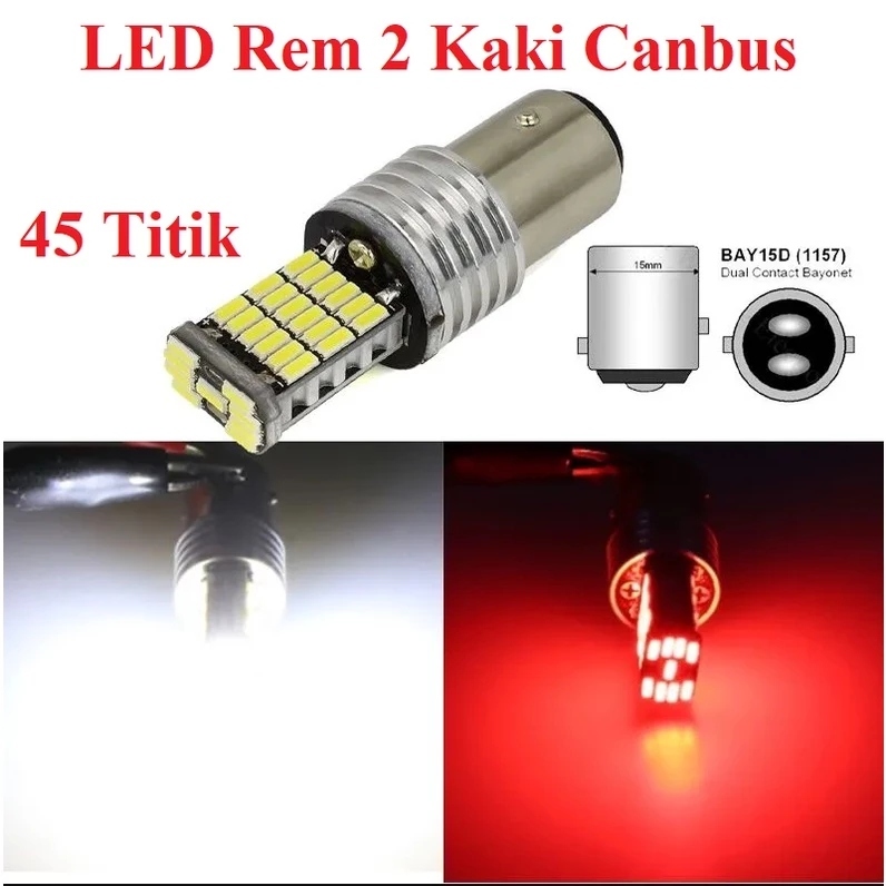 LAMPU LED Rem Brake Bayonet 1157 45 Titik Mobil Motor Kaki 2 DC BAY15D Stoplamp Dajjal Shinagawa