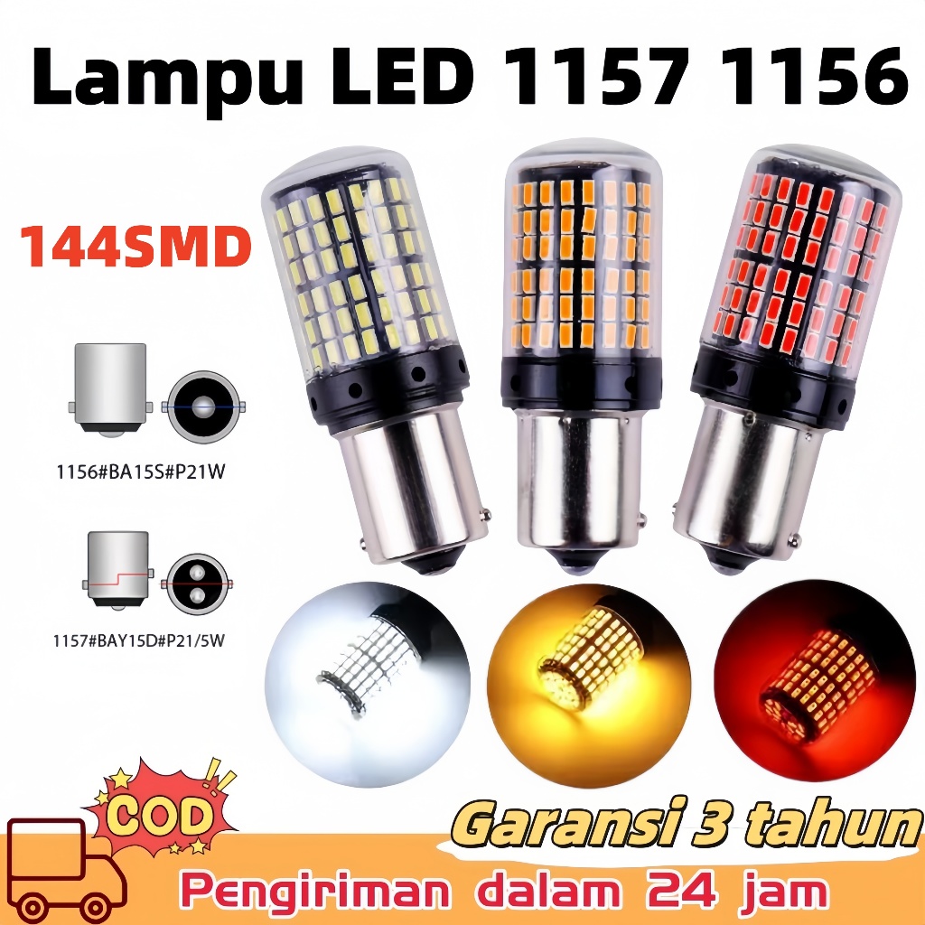 Lampu LED 144 Titik Mata SMD 1157 1156 Kedip Flash Mundur Rem Sein Sen Mobil Motor Putar Bayonet Lampu seinlampu remlampu mundur mobil