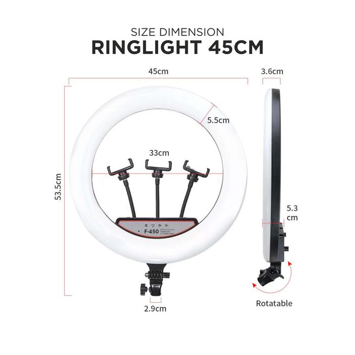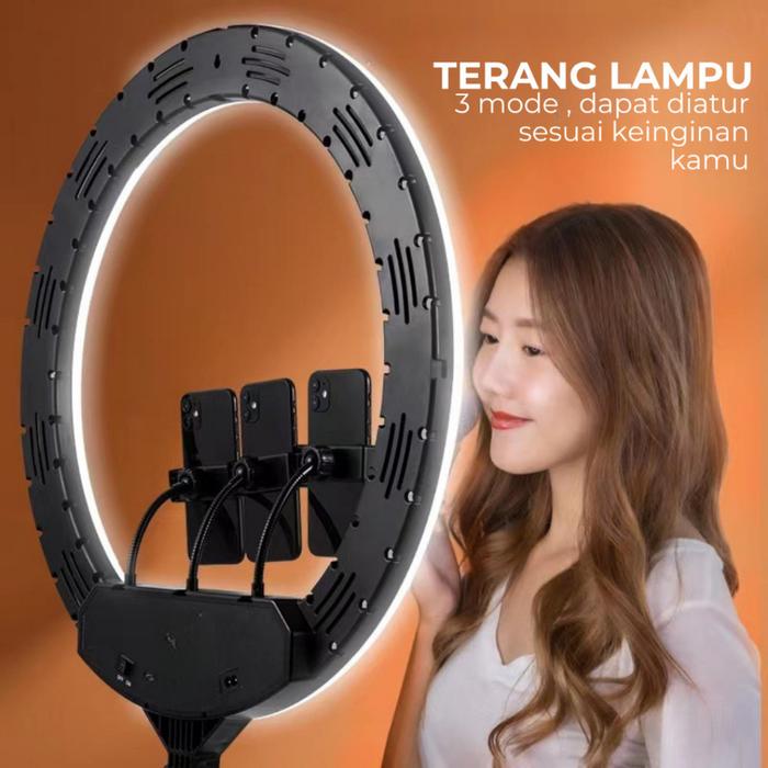 RING LIGHT TRIPOD 45CM WITH 3 PHONE HOLDER LIVE STREAMING VLOG FREE REMOTE - RINGLIGHT 45CM, EKSTRA BUBBLE