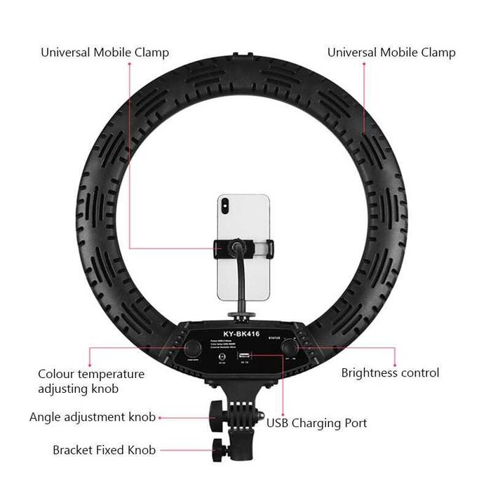 LAMPU RING LIGHT 416 LED 65W 18 INCH WITH HOLDER - HITAM