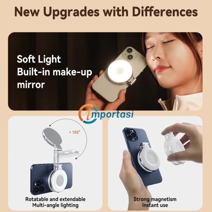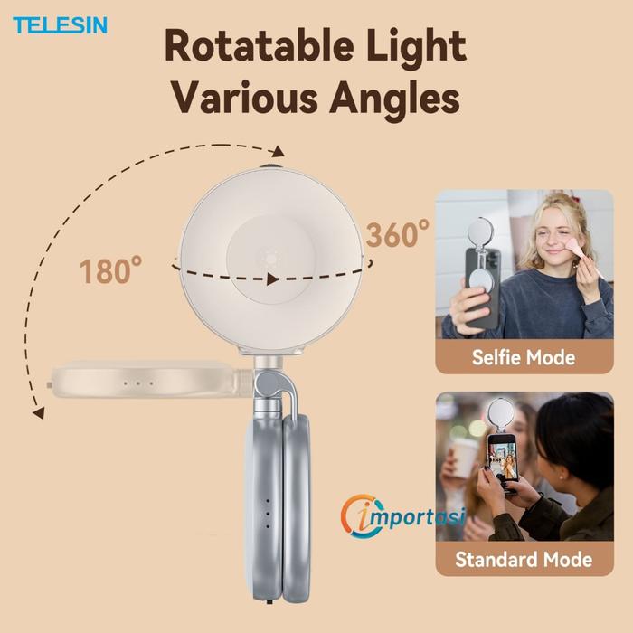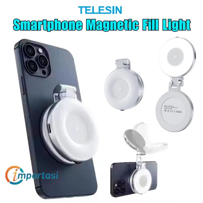 TELESIN MAGNETIC LAMPU LED SELFIE RING LIGHT MIRROR FOR IPHONE 17 16 15 14 13 12 PRO MAX MAGSAFE
