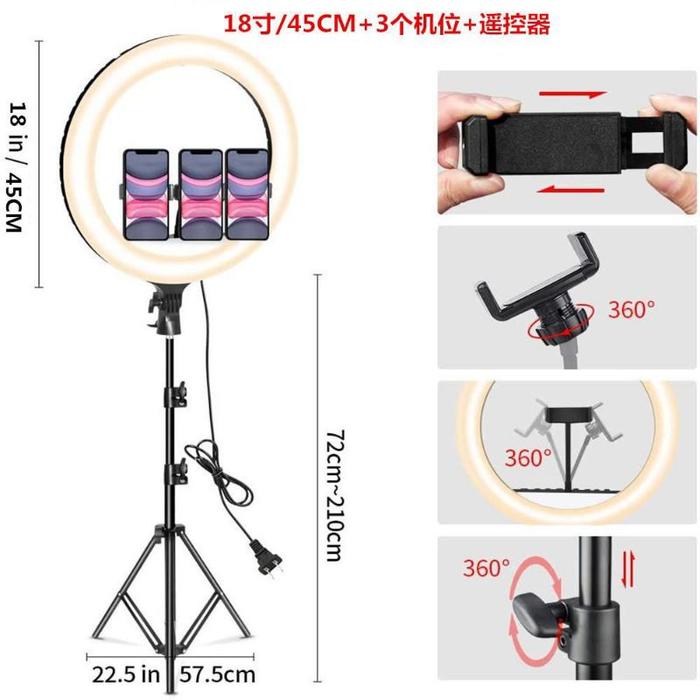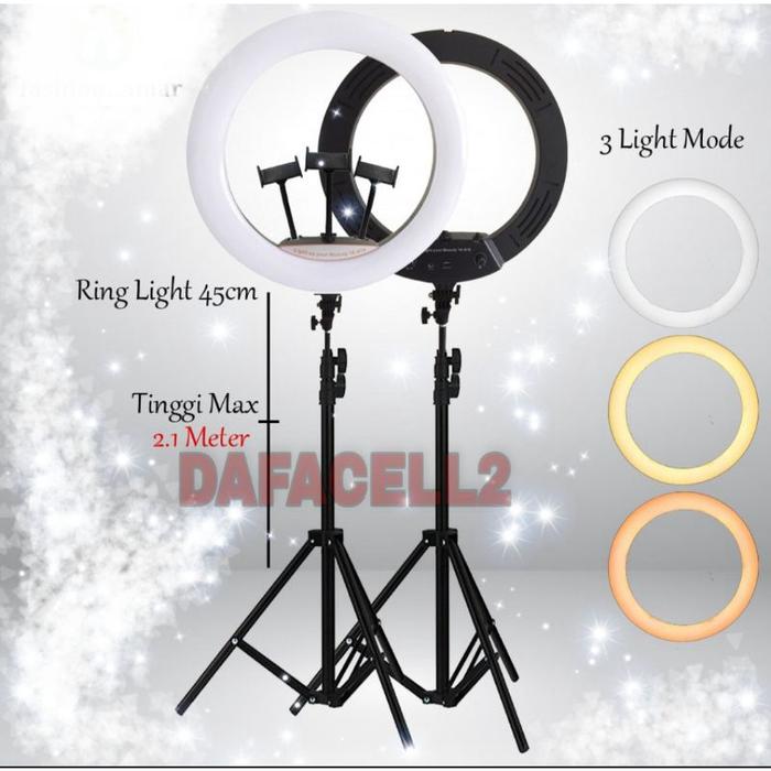 RING LIGHT 45CM + LIGHT STAND TRIPOD 2.1 METER MAKE UP LIVE STREAMING MUA / RING LIGHT 45 CM 18 INC / DAFACELL - RING LIGHT 45CM