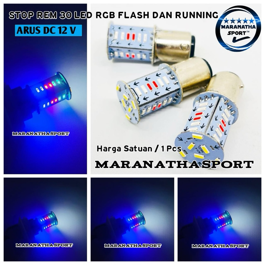 Lampu Led Rem Stop Running RGB 30 Mata Running Kedip 2 Mode Bayonet Universal Motor Mobil