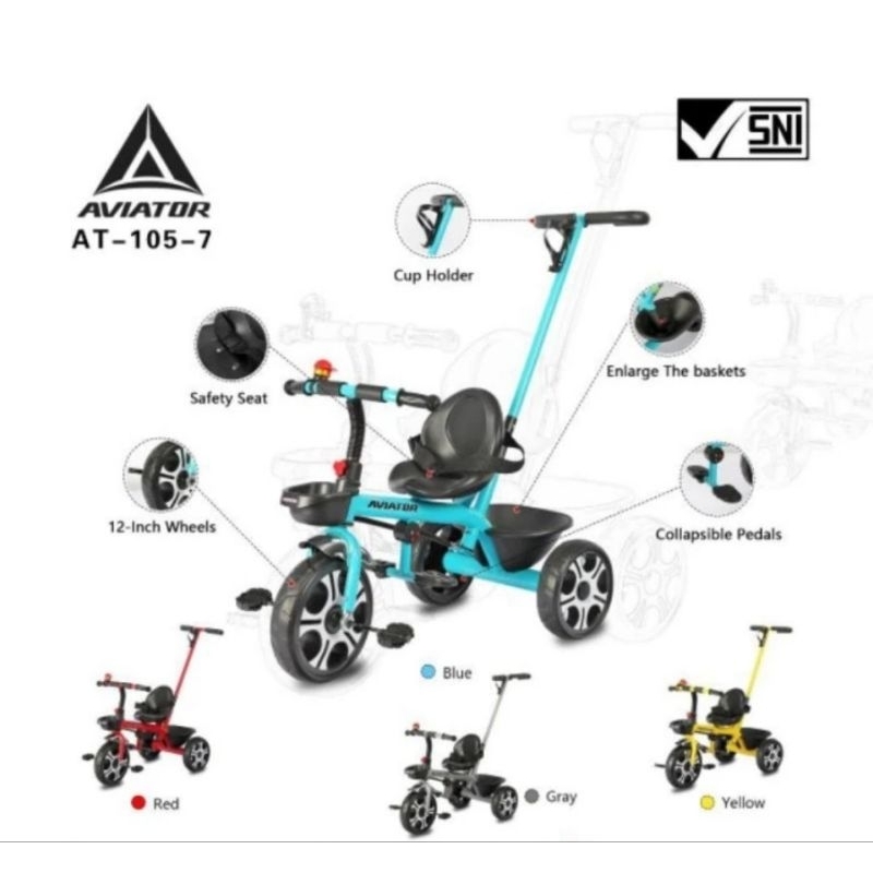 Sepeda Anak Roda Tiga Aviator AT 308-7 / 105-7 / 125-7 Dorongan Bel Keranjang AT-105-7 AT105-7 Tricycle Pasific