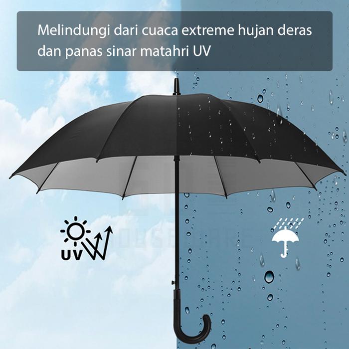 HUGO Payung Polos Warna Standar Otomatis Anti UV Payung Promosi Besar Gagang Tongkat Rangka Kuat Kokoh - Maroon