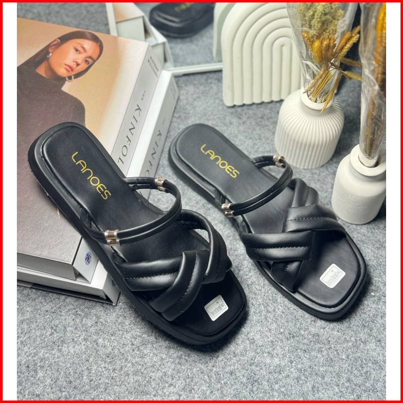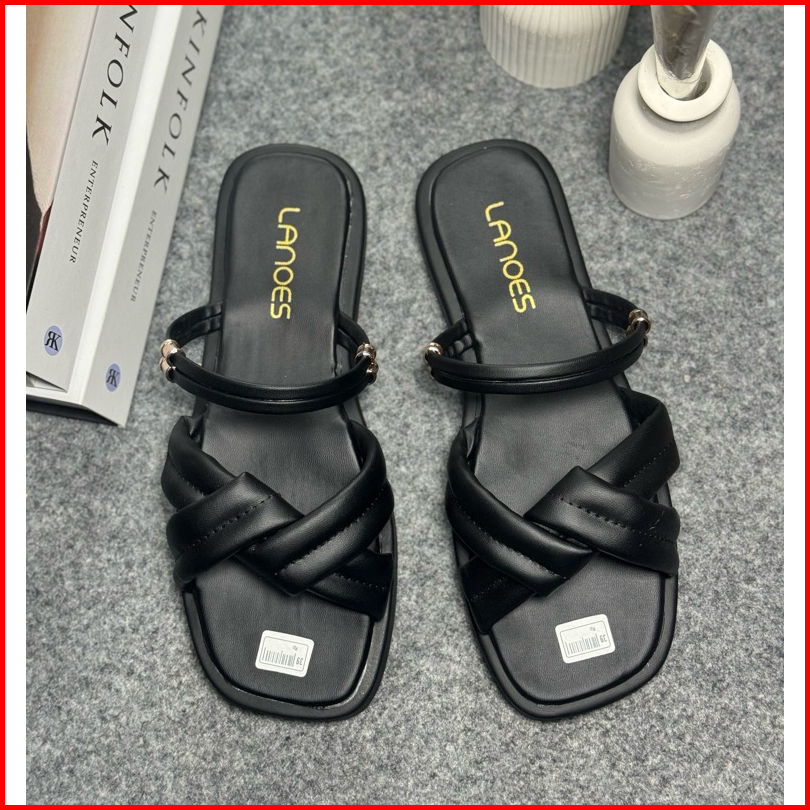 Lanoes Sandal Platform Wanita Korean Style Silang Tali Belakang Anti Slip Terbaru Kekinian 2025