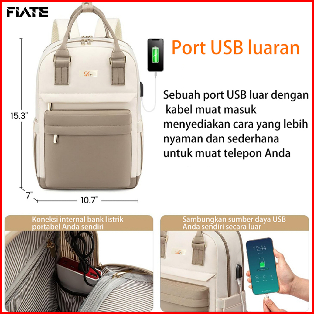 Flate Tas Ransel Wanita Tas Sekolah Fashion Korean Style Tahan Air Tas Ransel Laptop 16 Inch