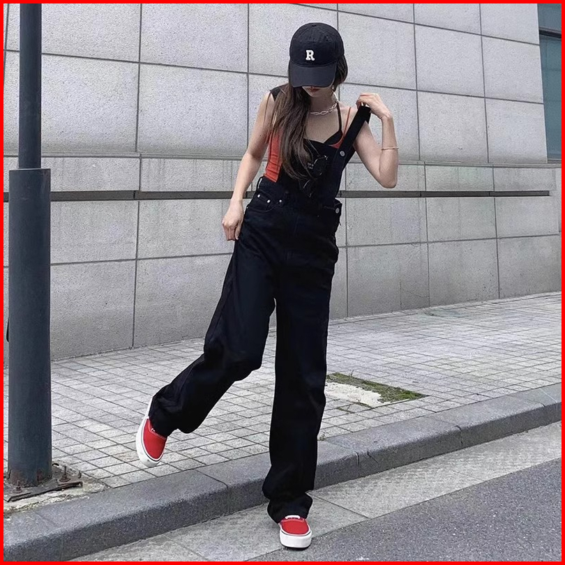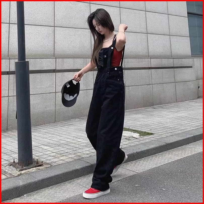 Kekinian Korean Hitam New Style Jumpsuit Jeans Wanita Jumpsuit Wanita Warna Hitam Pinggang Tingg Yang Longgar