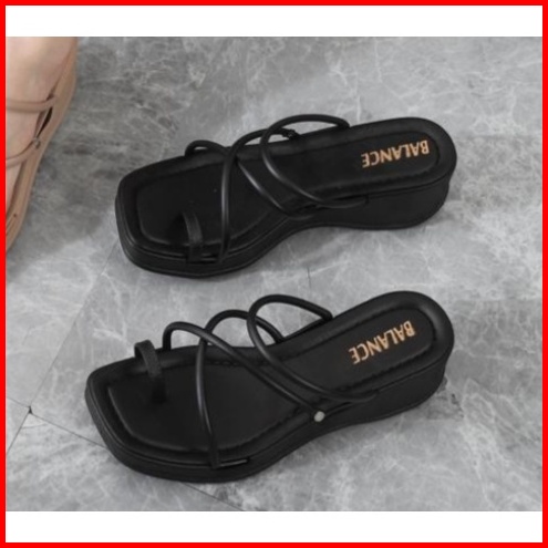 Sandal Wanita Wedges Import Balance Motif Silang Hak Sedang 2230