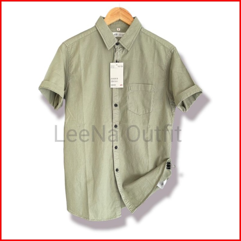 Kemeja Kerah Pendek Pria Hm Premium Soft Twill Katun