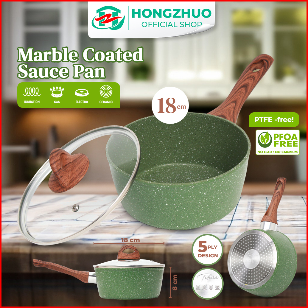 Tifale By Hongzhuo Organic Greenly Cookware Saucepan 18cm Glass Lid Marble Coated Anti Lengket