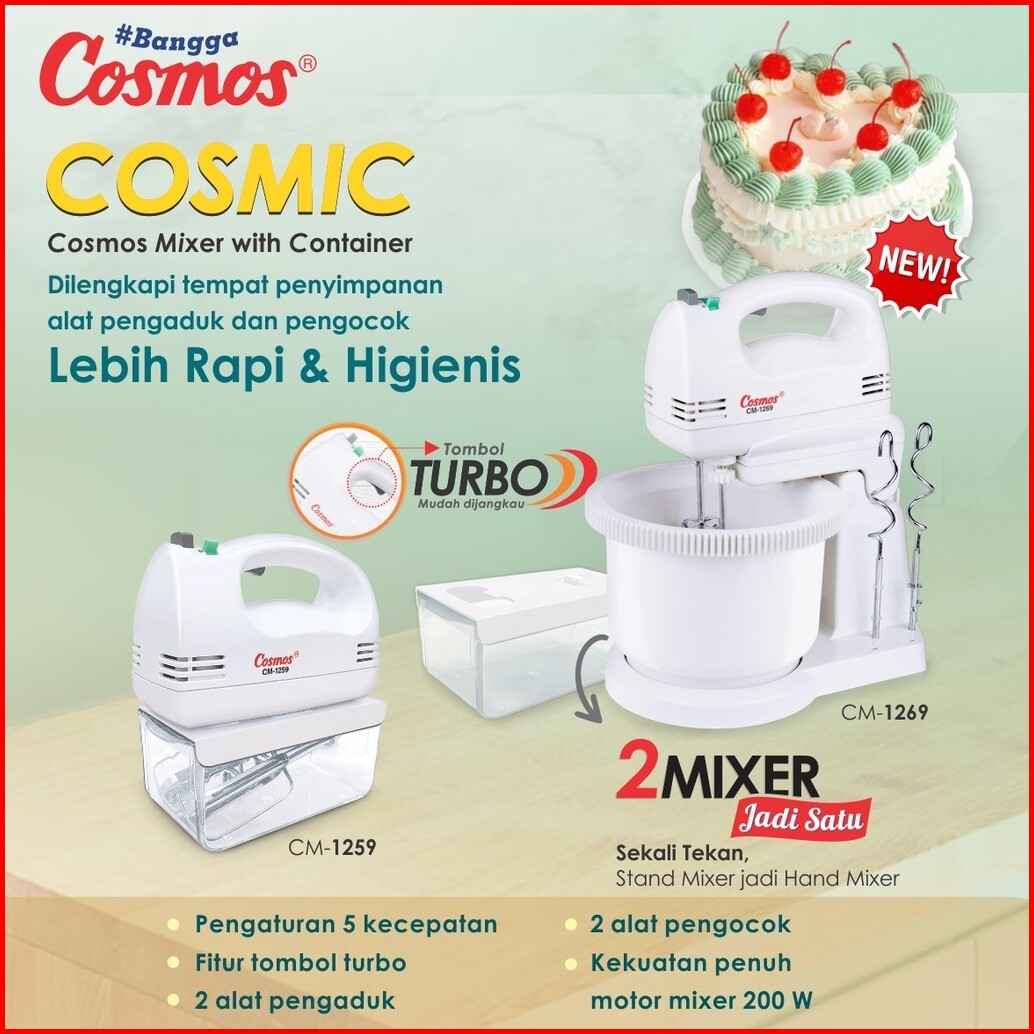 Cosmos Cm-1259 Hand Mixer 5 Speed Real Turbo With Container - 200 Watt