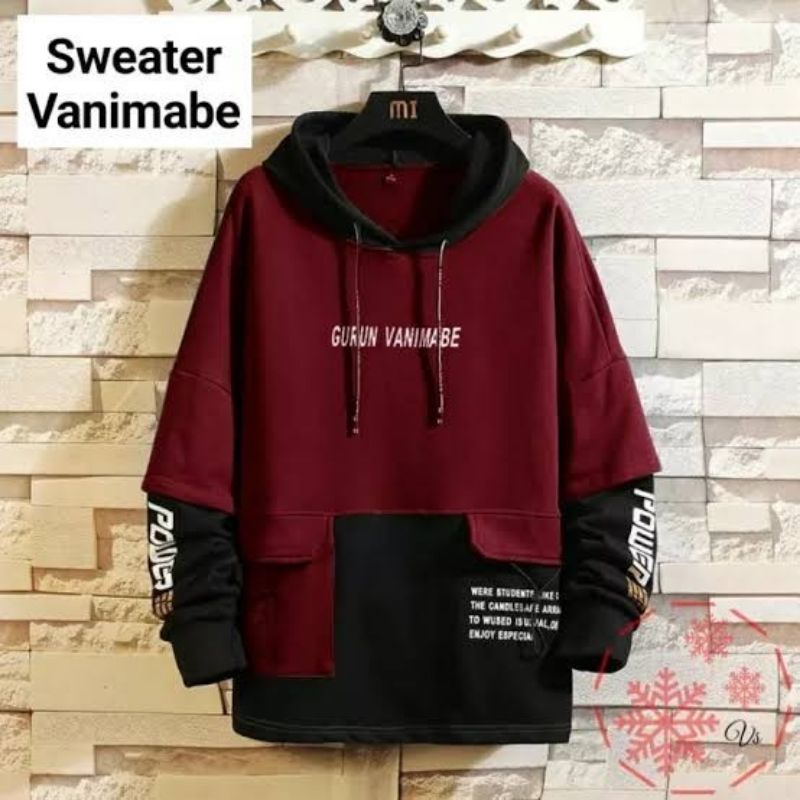 NEW Sweater hoodie pria GURUN VANIMABE lengan panjang / switer pria / jaket pria