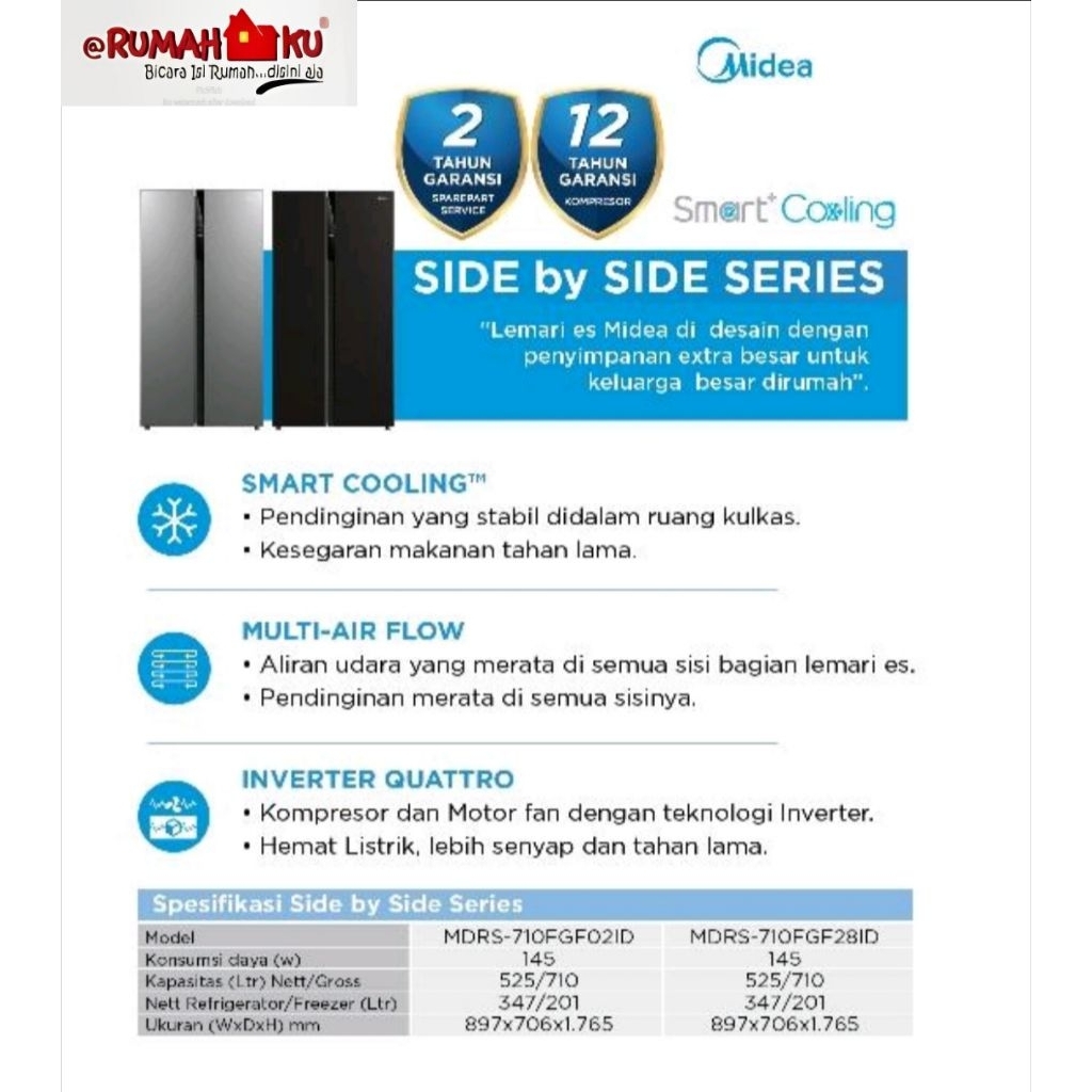 Kulkas Side by Side MIDEA 548L - MDRS710FGF28ID